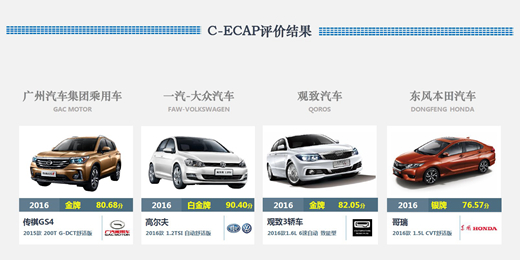 在本批次C-ECAP評價中,一汽-大眾高爾夫車型獲得截止至目前C-ECAP評價車型中的最高獎牌白金牌;廣汽傳祺是在C-ECAP中首次出現(xiàn)的中國品牌,與觀致車型一并獲得金牌;東風(fēng)本田哥瑞因在車內(nèi)噪音方面的相對得分較低,獲得銀牌。