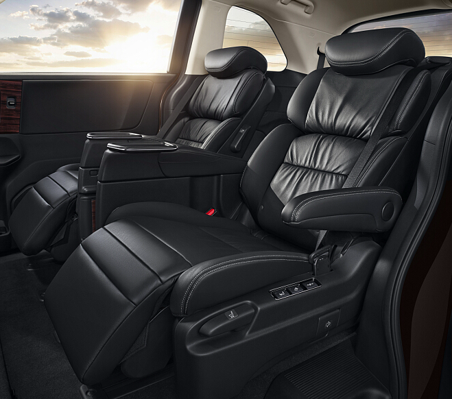 全新一代艾力紳第二排座椅堪比飛機頭等艙,可橫向、縱向方位調節(jié),實現多樣空間變化,而且還可電動調節(jié)椅背和腿托,手動調節(jié)肩部角度,從容享受舒適坐姿。且具備座椅加熱功能,實現了同級別最優(yōu)的乘坐舒適性,隱藏在二排的扶手型小桌板商務范十足,全系標配的電動雙天窗大幅提升了乘坐者的舒適感。