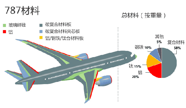 787飛機(jī)的碳纖維復(fù)合材料使用量占到了全機(jī)體積的80%。從航空領(lǐng)域到汽車工業(yè)上的應(yīng)用,碳纖維復(fù)合材料對于工程產(chǎn)品的關(guān)鍵意義就在于輕質(zhì)高強(qiáng)。汽車上常用的碳纖維增強(qiáng)樹脂基復(fù)合材料的密度為1.5-2.0g/立方厘米,這只有普通碳鋼的1/4-1/5,比常用的鋁合金還要輕1/3左右,但碳纖維復(fù)合材料的機(jī)械性能優(yōu)于金屬材料,其抗拉強(qiáng)度高于鋼材3-4倍,剛度高于鋼材2-3倍。