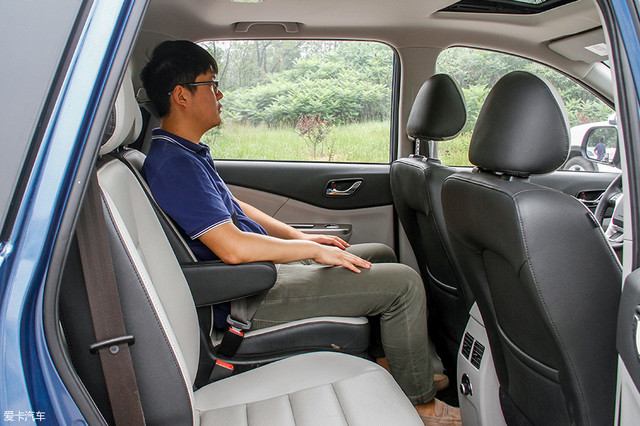 風行S500的座椅采用2+2+3的布局,第二排依舊是人們俗稱的“老板坐席”。體驗者坐在“老板座”上的回饋是舒適、寬敞,頭頂有一拳的空余,兩腿與前排座椅間的距離更是恰到好處。