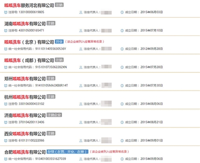 記者昨天查詢國家企業(yè)信用信息公示系統(tǒng),發(fā)現(xiàn)上述提及的各地分公司已大多數(shù)被注銷,沒有顯示注銷的,也已被列入經(jīng)營異常名錄。