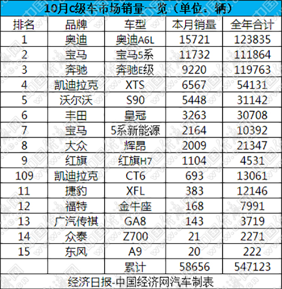 統(tǒng)治C級(jí)車市場(chǎng)近30年的奧迪A6L,即便處在產(chǎn)品生命期末端,依舊不減“老大”的霸氣。數(shù)據(jù)顯示,A6L在10月份的銷量達(dá)15721輛,勇奪單月銷量冠軍;前10個(gè)月的累計(jì)銷量為123835輛,趕超奔馳E級(jí),重新收獲C級(jí)車市場(chǎng)的銷量冠軍。