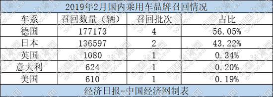 分車系來(lái)看,3月,德系和日系累計(jì)召回汽車數(shù)量占召回總量多達(dá)99.27%。其中,德系共4個(gè)品牌累計(jì)召回汽車177173輛,占召回總量的56.05%,數(shù)量最多;日系共2個(gè)品牌累計(jì)召回汽車136597輛,占比43.22%;此外,英國(guó)、意大利、美國(guó)各有一品牌發(fā)布了召回公告,但三車系總共召回?cái)?shù)量不足總量的1%。值得注意的是,繼2月之后,3月仍無(wú)自主品牌發(fā)布召回信息。