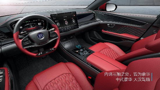 漢整體基于Dragon Face設計語言打造,外觀造型采用雙龍并型·性能美學設計語言,內飾采用環(huán)抱式品格設計語言。內飾設計,左右對稱的品字形布局營造出和諧大方的中式豪華內涵。內飾材質工藝、色彩紋理把握有度,Nappa真皮、天然真木、真鋁等高級材質恰到好處的使用。