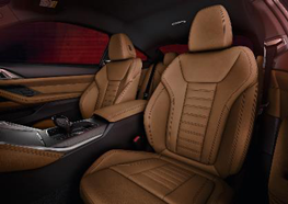 打開跑車專屬的無框式車門,迎賓光毯映入眼簾,彰顯匠心獨(dú)運(yùn)的運(yùn)動豪華氣息。全新BMW 4系雙門轎跑車的客艙設(shè)計(jì)現(xiàn)代而簡約,每一處細(xì)節(jié)都體現(xiàn)了BMW經(jīng)典的“以駕駛者為中心”的設(shè)計(jì)理念。Sensatec合成皮儀表板搭配智能感應(yīng)氛圍燈、高級三區(qū)自動空調(diào)與帶換擋撥片的M運(yùn)動型多功能真皮方向盤,讓越級豪華的舒適感和動感十足的駕馭感撲面而來。同時(shí),新開發(fā)的前排M運(yùn)動型座椅采用人體工程學(xué)設(shè)計(jì),擁有卓越的包裹和支撐效果。轎跑車專屬的安全帶推送功能讓車主于從容優(yōu)雅間,彰顯天性沖動的不羈個(gè)性。向駕駛員一側(cè)傾斜的中央控制臺,為前排座椅乘員營造出一種環(huán)繞式氛圍。配備一體式頭枕的獨(dú)立式后排座椅設(shè)計(jì)獨(dú)特,可輕松容納兩名乘員。降噪風(fēng)擋玻璃通過精心設(shè)計(jì),有效地將風(fēng)噪轉(zhuǎn)移到車身周圍,為車內(nèi)營造出更加靜謐、舒適的駕乘體驗(yàn)。