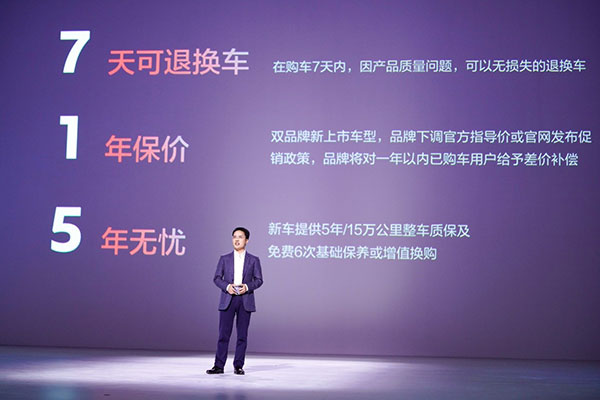 “買車放心”,開創(chuàng)性地推出“7·1·5”三項服務(wù)政策,即“7天可退換車”“新車承諾1年保價”“新車質(zhì)保5年無憂”。消費者在購車7天內(nèi),因產(chǎn)品質(zhì)量問題,可以無損失的退換車;雙品牌新上市車型,品牌下調(diào)官方指導(dǎo)價,或官網(wǎng)發(fā)布促銷政策,將對1年以內(nèi)已購車用戶給予差價補償;新車至高享受5年/15萬公里整車質(zhì)保+免費6次基礎(chǔ)保養(yǎng)(或可選擇增值換購禮),遠(yuǎn)高于三包標(biāo)準(zhǔn)和行業(yè)水平。