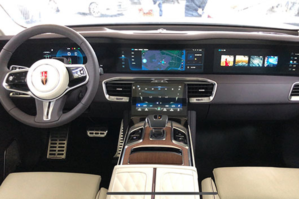 在內(nèi)飾部分,紅旗E-HS9的設(shè)計處處體現(xiàn)“中直尚雅”、“精工致作”、“山水意境”的東方美學(xué)。對稱式的布局與故宮的中軸線設(shè)計一本同源。全液晶儀表盤、中控多媒體觸控屏、副駕駛位眼睛顯示屏的三聯(lián)屏設(shè)計,再搭配中控中間的控制面板觸摸屏,擁有四塊可觸摸大屏幕讓整車的科技感十足。當(dāng)然,在后排還有座椅屏和后排中央扶手大屏。七屏娛樂系統(tǒng)在體現(xiàn)出科技感的同時,也兼并了舒適與豪華。
