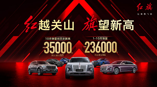 每一分對(duì)極致產(chǎn)品付出的努力,都將贏得客戶最珍貴的選擇和信任。10月,紅旗H9終端銷售量突破4000臺(tái),緊跟一線豪華品牌同級(jí)車型,繼續(xù)擴(kuò)大國(guó)產(chǎn)品牌豪華轎車銷量領(lǐng)先優(yōu)勢(shì);紅旗E-HS9以終端銷售量突破810臺(tái)的成績(jī),創(chuàng)下單車型月銷量紀(jì)錄;紅旗“雙9”成為增強(qiáng)客戶產(chǎn)品體驗(yàn)、帶動(dòng)新紅旗產(chǎn)品矩陣向上突破的強(qiáng)大“引擎”。