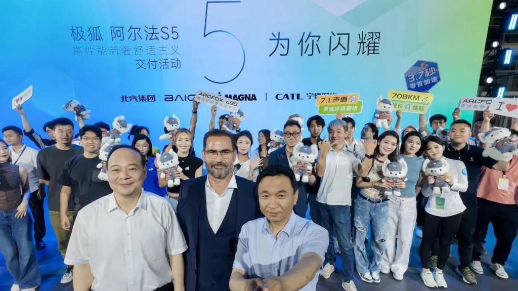 除北汽集團之外,核心零部件合作伙伴寧德時代董事長兼CEO曾毓群、整車智造合作伙伴麥格納斯太爾整車事業(yè)部全球總裁羅蘭·普雷特納,兩位世界級巨頭也同時現(xiàn)身活動現(xiàn)場,在業(yè)界首次“合體”為阿爾法S5首批用戶交車。