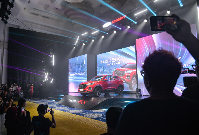 6月13日,在印度尼西亞雅加達(dá),人們?cè)谄嫒鹦萝?chē)TIGGO 5X發(fā)布會(huì)現(xiàn)場(chǎng)拍攝。新華社記者 徐欽 攝