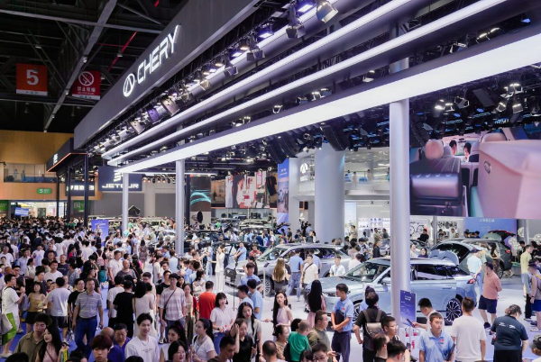 圖為2024成都國際車展上人頭攢動的奇瑞展區(qū)