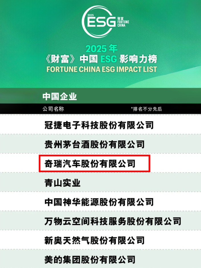 技術(shù)創(chuàng)新驅(qū)動奇瑞回歸價值本源,以全球企業(yè)公民身份踐行ESG理念。無論是奇瑞帶來的全球首款熱效率突破48.1%的鯤鵬天擎混動發(fā)動機,還是密集上市的新能源汽車產(chǎn)品;無論是奇瑞向聯(lián)合國兒童基金會捐款開展國際兒童教育項目、與世界自然保護(hù)聯(lián)盟(IUCN)合作開展“珍愛自然”奇瑞×IUCN全球項目,又或是著眼全球最迫切的減碳議題,率先在全價值鏈推行降碳管理,奇瑞一直積極踐行ESG理念,關(guān)于ESG的積極實踐和創(chuàng)新成果也贏得了社會廣泛認(rèn)可。在5月《財富》發(fā)布的“2025年中國ESG影響力榜”中,奇瑞汽車憑借自身ESG領(lǐng)域的卓越表現(xiàn)入榜,這也是奇瑞汽車自2024年以來,第二次入選該榜單。