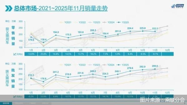 車市正進入平穩(wěn)發(fā)展階段。12月8日,中國汽車流通協(xié)會乘用車市場信息聯(lián)席分會(以下簡稱“乘聯(lián)分會”)發(fā)布的數(shù)據(jù)顯示,2025年前11個月零售2148.3萬輛,整體保持增長。不過,今年11月車市零售量同比、環(huán)比均出現(xiàn)下滑。“11月乘用車市場銷量環(huán)比出現(xiàn)下降,是比較少見的?!背寺?lián)分會秘書長崔東樹認為,今年上半年,我國乘用車市場銷量實現(xiàn)較快增長,下半年車市增長需回到合理、穩(wěn)定的狀態(tài)。車市進入平穩(wěn)期有利于市場長期穩(wěn)定發(fā)展,預(yù)計今年零售將增長5%。