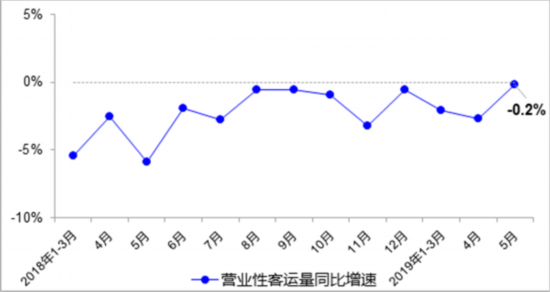 5月,完成營業(yè)性客運量14.5億人,同比下降0.2%,降幅較4月收窄2.5個百分點,其中公路營業(yè)性客運量下降4.2%、水路客運量增長1.6%。