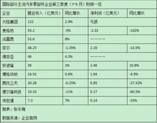 在汽車行業(yè)陰霾加重和裁員風(fēng)波的抗議聲中,近日,大陸集團(tuán)、麥格納、電裝、愛信精機(jī)、佛吉亞、法雷奧等多家跨國(guó)汽車零部件巨頭陸續(xù)公布了第三季度(7~9月)財(cái)報(bào)。全球汽車經(jīng)濟(jì)低迷的巨大壓力,懸而未決的貿(mào)易沖突,再加上9月中旬開始的通用汽車工人大罷工等,讓汽車產(chǎn)業(yè)上游供應(yīng)鏈雪上加霜。大多數(shù)供應(yīng)商出現(xiàn)了營(yíng)收或利潤(rùn)下滑,并伴隨著裁員、削減成本、下調(diào)全年預(yù)期等。