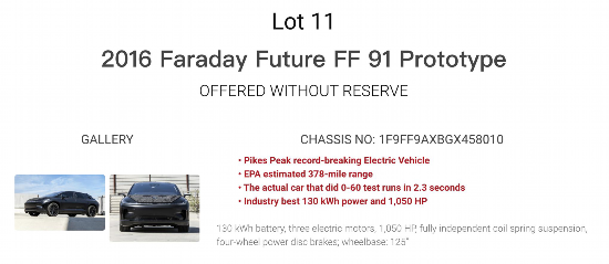 兩輛法拉第未來FF91原型車出現在拍賣網站上