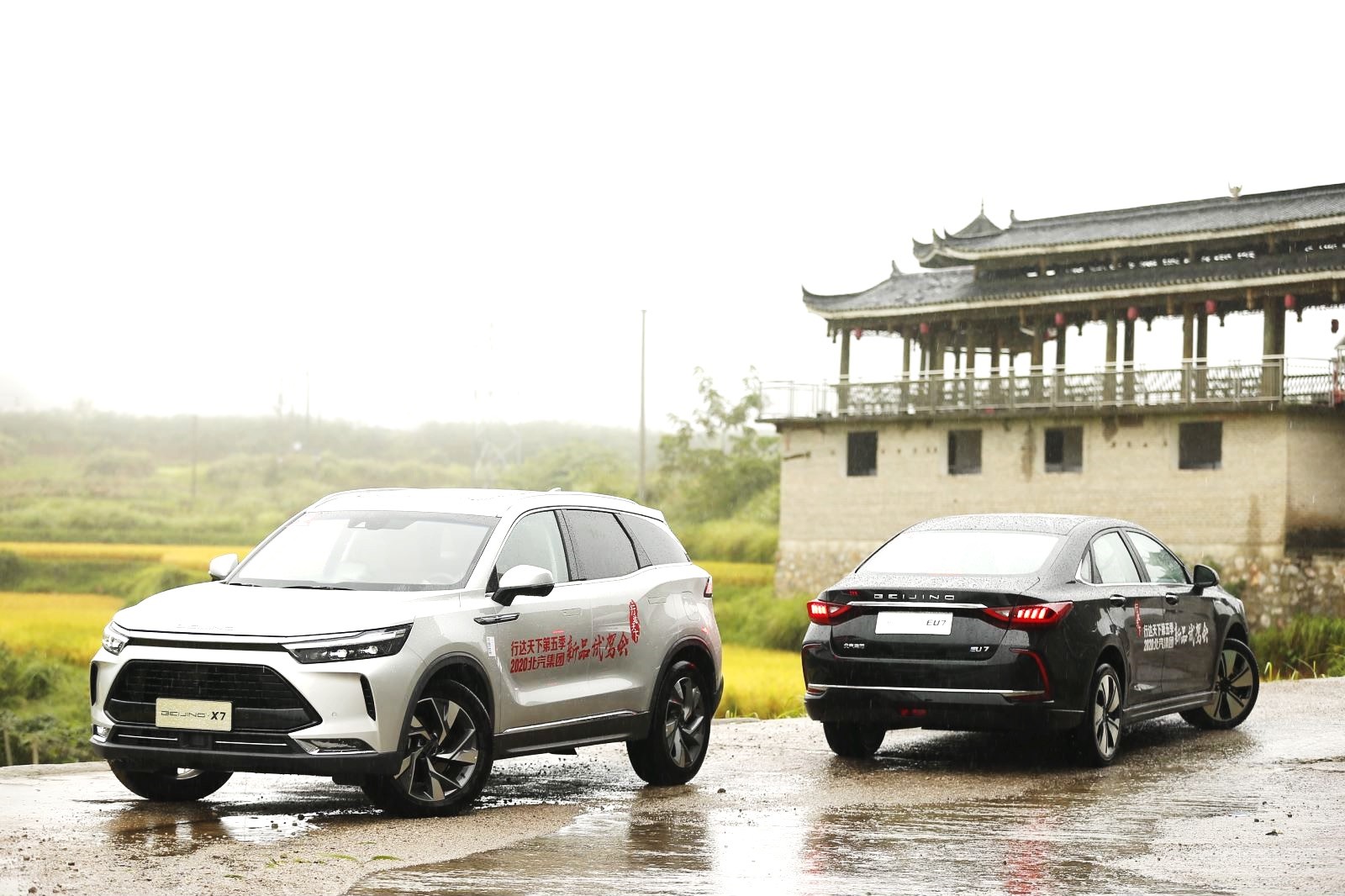 穿行黔東南洞林湖景之間,BEIJING-X7和BEIJING-EU7的機(jī)械之美與自然風(fēng)光完美融合。BEIJING-X7采用大都致美設(shè)計(jì)語(yǔ)言,六邊形大氣格柵,配合銀河系全LED智慧光源系統(tǒng)打造出一張自信前臉,簡(jiǎn)約流暢的車身線條與身后的梯田曲線相互映襯,隱藏式智能感應(yīng)門(mén)把手點(diǎn)綴其中,不僅美觀精致,更能實(shí)現(xiàn)0.34超低風(fēng)阻系數(shù)。而B(niǎo)EIJING-EU7的雙C大燈獨(dú)具辨識(shí)度,逸美造型在山川映襯下更顯優(yōu)雅大氣。