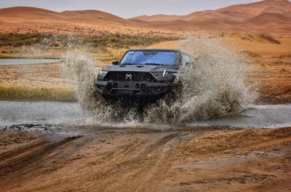 “快走沙、慢走水”是越野圈的一句經(jīng)典老話,也是無數(shù)越野玩家的經(jīng)驗之談。在沙漠里,道路過于“松軟”,具有很多不確定性,車輪非常容易打滑甚至陷入沙坑,陷沙、翻車的情況屢見不鮮,只有快速通過才是硬道理,而要快速通行或是過坑、沖坡,必須依靠強悍的動力、強大的四驅(qū)以及細膩的越野技術(shù)。猛士品牌猛士917基于M TECH猛士智能越野架構(gòu)開發(fā),純電版和增程版分別能輸出最大功率1000馬力和800馬力,采用兩擋變速箱,峰值輪邊扭矩更是超過16000牛·米,擁有超強暴發(fā)力。