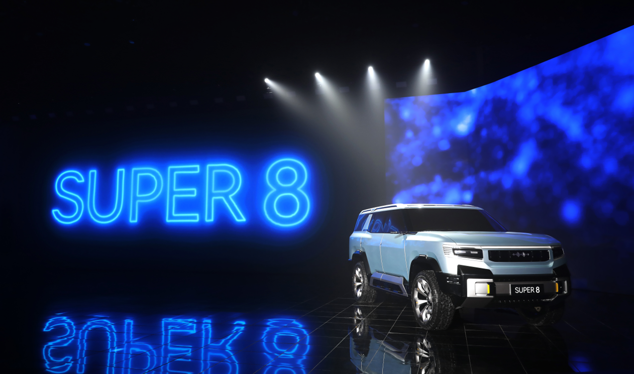 豹8車型的概念車SUPER 8,則展示了方程豹對(duì)硬派SUV的未來(lái)探索。SUPER 8在設(shè)計(jì)上不再拘泥于傳統(tǒng)的方盒子設(shè)計(jì),而是從科幻的未來(lái)戰(zhàn)場(chǎng)獲取靈感,將賽博工業(yè)美學(xué)與肌肉感相融合,營(yíng)造出強(qiáng)壯、寬大的體量和高級(jí)、純粹的車身形面;咬合式鎖扣設(shè)計(jì)環(huán)繞整車,體現(xiàn)了底盤與車身的上下分體式連接,又展現(xiàn)出極強(qiáng)的結(jié)合性、穩(wěn)固性與保護(hù)感,讓用戶自信馳騁、自由穿越、自在征服。