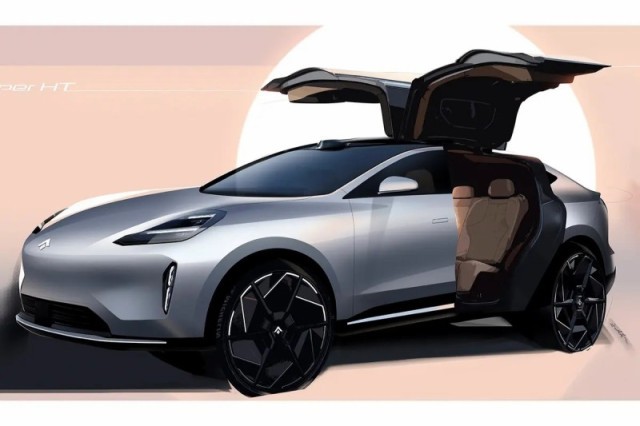 網通社新車 日前,昊鉑全新打造純電SUV——昊鉑HT渲染圖公布,新車定位中大型純電SUV,并將采用鷗翼門設計、溜背式造型。動力方面,新車將搭載與昊鉑GT相同型號的永磁同步驅動電機,新車有望在年內上市。