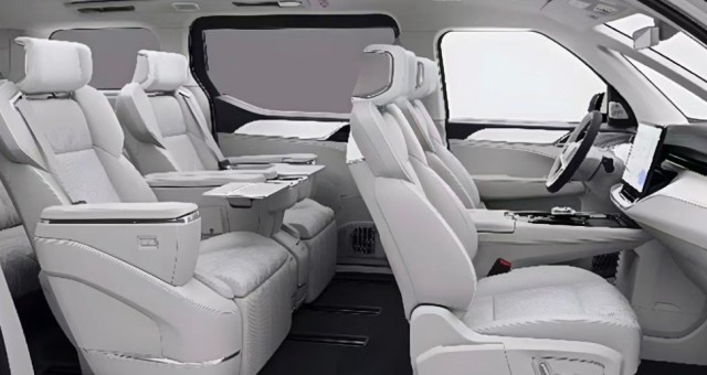 新車內部依舊采用較為簡約的設計風格,并配備大尺寸懸浮式中控屏幕。與此同時,沃爾沃EM90的第二排采用支持多項電動調節(jié)且?guī)в型韧泻托∽腊宓莫毩⒑娇兆巍A硗?,該車配備包含座椅頭枕內置揚聲器在內的共21揚聲器寶華韋健音響系統(tǒng),總功率達到2460W,并且還標配沃爾沃汽車獨有的空氣凈化技術,其配備高效空調濾芯和主動式空氣凈化技術,可清除高達95%的PM2.5顆粒物。