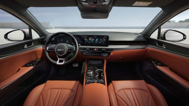 新款K5內(nèi)部同樣采用了最新的設(shè)計(jì)風(fēng)格,并使用雙拼配色,還在中控臺(tái)及門板等處運(yùn)用大量軟質(zhì)材料進(jìn)行包覆,整體極具質(zhì)感。另外,新車還配備由12.3英寸全液晶儀表+12.3英寸中控屏組成的雙聯(lián)屏系統(tǒng),搭配三輻式多功能方向盤和觸控式空調(diào)控制面板及HUD抬頭顯示系統(tǒng)實(shí)用性、科技感較強(qiáng)。動(dòng)力方面,該車將提供包含1.6T和2.0L混動(dòng)在內(nèi)的多種動(dòng)力組合可選。