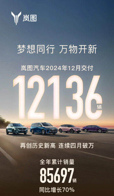 歷來,產(chǎn)品上新及更新迭代會(huì)對(duì)銷量起到重要的提振作用,嵐圖汽車也不例外。2024年對(duì)于嵐圖來說可謂是一個(gè)“豐收之年”,完成了“三年三品類,四年四款車”的戰(zhàn)略布局,相繼推出嵐圖FREE 318、全新嵐圖夢(mèng)想家和嵐圖知音三款車,覆蓋了SUV、MPV和轎車細(xì)分市場(chǎng)。