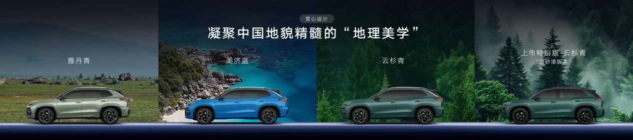 車身顏色上,全新探岳L開創(chuàng)性構(gòu)建“地理美學(xué)”色系,以“6+1 色彩哲學(xué)”,凝聚中國地貌精髓,其中雅丹青和美濟藍均是大眾品牌中國區(qū)首次采用顏色。