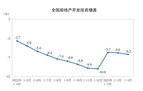 房地產(chǎn)開發(fā)投資完成情況,1—4月份,全國房地產(chǎn)開發(fā)投資35514億元,同比下降6.2%(按可比口徑計(jì)算);其中,住宅投資27072億元,下降4.9%。