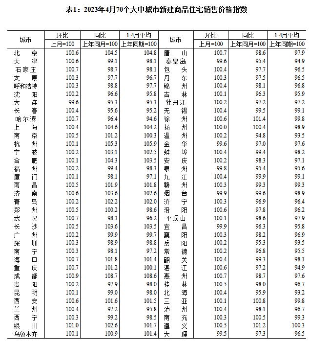 中新網(wǎng)5月17日電 國家統(tǒng)計(jì)局網(wǎng)站17日發(fā)布2023年4月份70個(gè)大中城市商品住宅銷售價(jià)格變動(dòng)情況,國家統(tǒng)計(jì)局城市司首席統(tǒng)計(jì)師繩國慶解讀表示,2023年4月份,70個(gè)大中城市中商品住宅銷售價(jià)格環(huán)比上漲城市個(gè)數(shù)減少,同比上漲城市個(gè)數(shù)增加。70個(gè)大中城市商品住宅銷售價(jià)格環(huán)比整體漲幅回落、二手住宅環(huán)比漲幅回落更為明顯,各線城市商品住宅銷售價(jià)格同比上漲或降勢(shì)趨緩。
