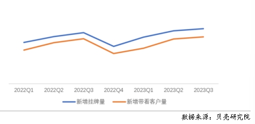 租金上漲動(dòng)力不足,三季度住房租金掛牌價(jià)水平環(huán)比下降,且低于去年同期水平
