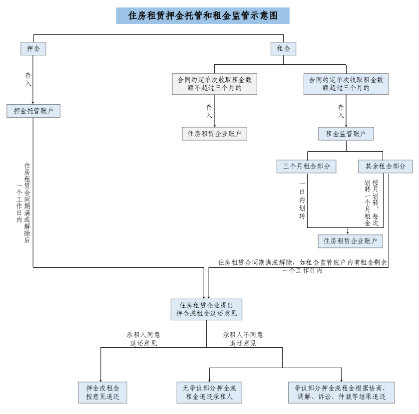據(jù)了解,《北京市住房租賃條例》第三十六條規(guī)定,住房租賃企業(yè)向承租人收取的押金應(yīng)通過第三方專用賬戶托管,單次收取租金的數(shù)額超過三個(gè)月租金的,超收的租金應(yīng)當(dāng)納入監(jiān)管,并且明確住房租賃企業(yè)收取的押金由第三方專用賬戶托管?!墩髑笠庖姼濉穱?yán)格落實(shí)《北京市住房租賃條例》規(guī)定,進(jìn)一步制定相關(guān)實(shí)施細(xì)則,明確賬戶主體,規(guī)范押金托管、租金監(jiān)管業(yè)務(wù)流程。