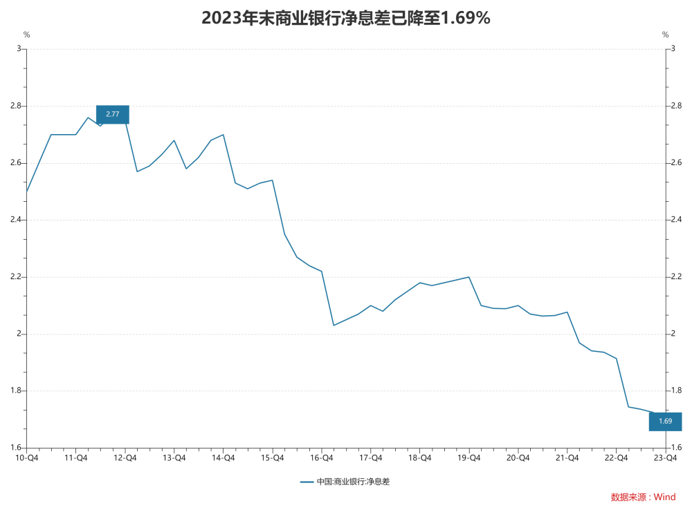 王青認為,2023年末商業(yè)銀行凈息差已降至1.69%,首次跌破1.7%關口,且突破了《合格審慎評估實施辦法(2023年修訂版)》中自律機制合意凈息差1.8%的臨界值。