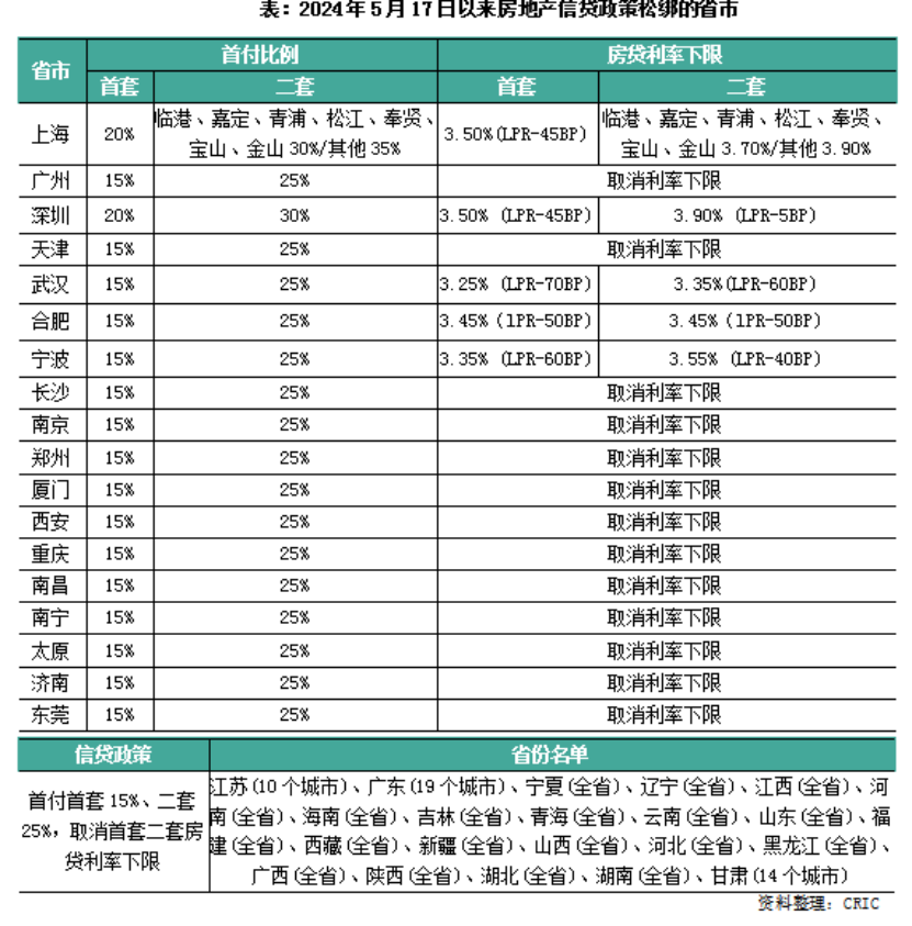 5月17日,央行將首套、二套房首付比例下限再下調(diào)5個(gè)百分點(diǎn),調(diào)整后分別為15%、25%。此后據(jù)克而瑞研究中心統(tǒng)計(jì),山東、福建、河南等超22個(gè)省份已經(jīng)落地執(zhí)行,全國(guó)超過(guò)200個(gè)城市15%首套房最低首付比例。