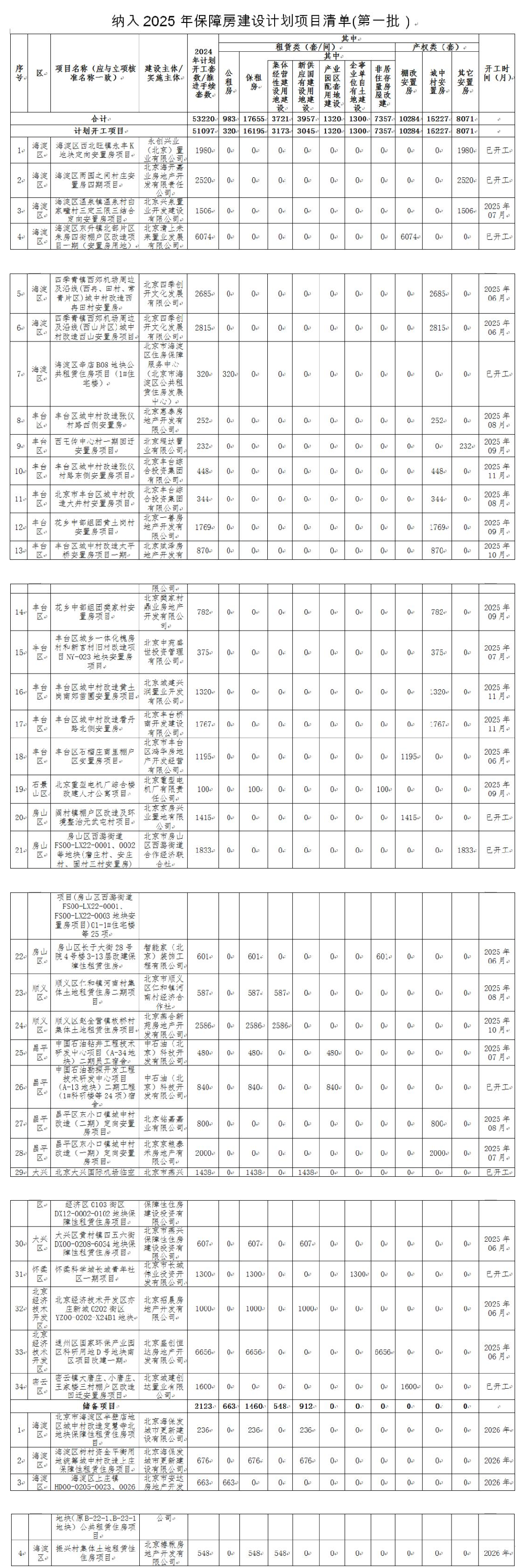(2025年保障房竣工計(jì)劃項(xiàng)目清單(第一批),圖源:北京市住建委)