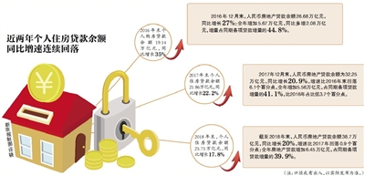 2018年全年房地產(chǎn)貸款增加6.45萬億元,占同期各項(xiàng)貸款增量的39.9%,比2017年占比低1.2個百分點(diǎn)