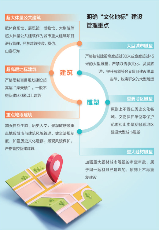 浙江省新昌縣文化廣電旅游局局長高雪軍讀者表示,一些地方在籌建“文化地標(biāo)”時,喜歡拿來主義,造成各地文化景觀同質(zhì)化明顯,“不同的地方要有不同的特色。建議地方政府積極引導(dǎo)創(chuàng)作人員、設(shè)計單位加強歷史文化保護傳承、城市設(shè)計、城市風(fēng)貌等方面的教育,增強社會責(zé)任感。”(黃 超 楊文明 竇瀚洋 制圖:蔡華偉)