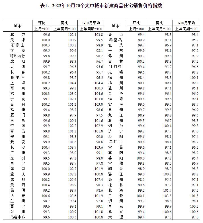 中新網(wǎng)11月16日電 據(jù)國家統(tǒng)計(jì)局網(wǎng)站消息,國家統(tǒng)計(jì)局16日公布2023年10月份70個(gè)大中城市商品住宅銷售價(jià)格變動(dòng)情況。數(shù)據(jù)顯示,10月份,70個(gè)大中城市商品住宅銷售價(jià)格環(huán)比下降城市個(gè)數(shù)略增,各線城市商品住宅銷售價(jià)格環(huán)比下降、同比漲跌互現(xiàn)。