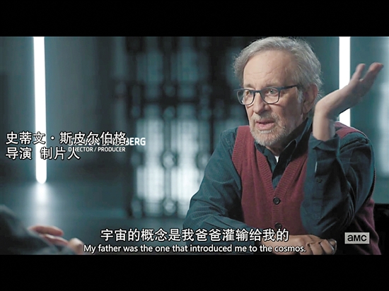 在第一期節(jié)目中,卡梅隆與斯皮爾伯格就《第三類接觸》《E.T.》等作品進(jìn)行了交流。被稱為“老頑童”的斯皮爾伯格在作品中始終保持童真的色彩,他坦言:“宇宙的概念是我爸爸灌輸給我的,他用一個(gè)卷毯子的硬紙筒制造了一個(gè)直徑5厘米的反射望遠(yuǎn)鏡,然后我就看見了木星的衛(wèi)星——那是他指給我看的第一個(gè)天體。我還看到了土星環(huán),那是我六七歲的時(shí)候?!?/p>