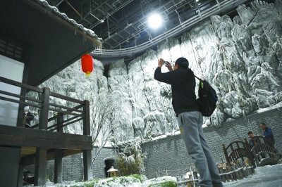圖為觀眾在攝影棚里觀看“白雪皚皚”。 本報(bào)記者 和冠欣攝