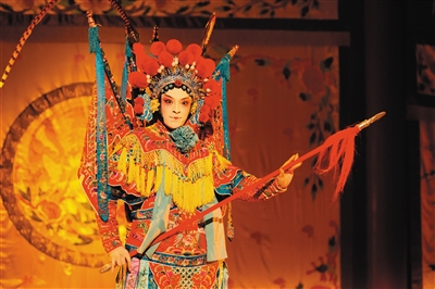 岳九(富大龍飾演)在臺(tái)上飾演的旦角,風(fēng)姿綽約。