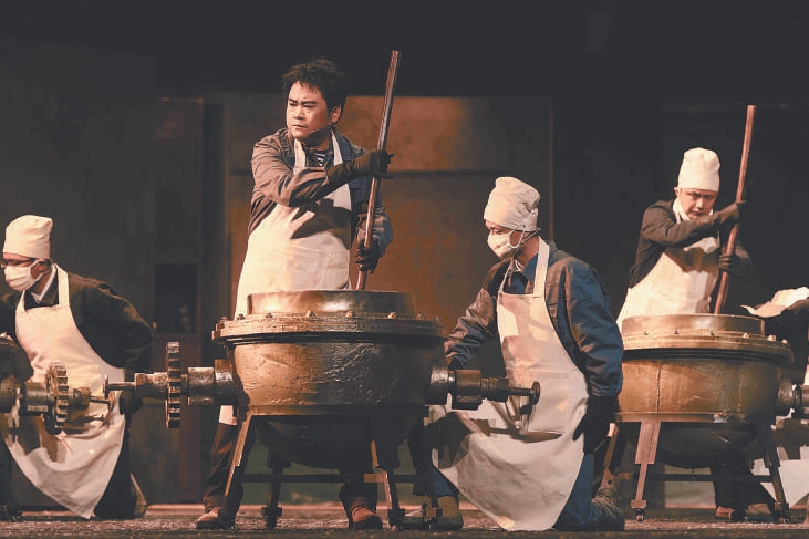 與歌劇跌宕的劇情相匹配,作曲家唐建平也創(chuàng)作了極具戲劇張力的音樂。全劇既有不少充滿挑戰(zhàn)的高音唱段,也有充滿“氛圍感”的旋律。221沒有合適的炸藥合成設(shè)備,工作人員就用人工土法攪拌,小危險(xiǎn)不時(shí)發(fā)生,這時(shí)的音樂充滿懸疑感,緊扣心弦。唐建平還在劇中融入了當(dāng)?shù)匾魳吩?,上半場音樂由藏族民歌引入,下半場則由青?;▋洪_啟,而在劇中的聯(lián)歡會(huì)上,藏族風(fēng)格的音樂元素不時(shí)響起,也為梁振道與女友的意外相遇鋪墊了情緒。