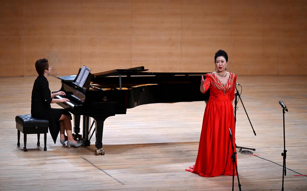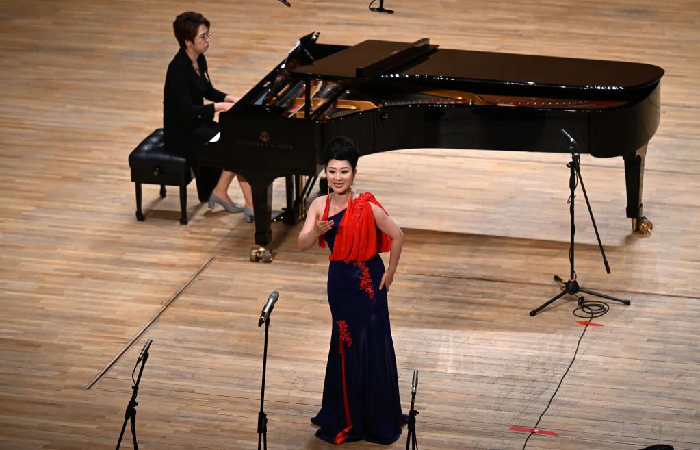 7月1日,天津歌舞劇院演員陳姝在演唱選自歌劇《玉鳥(niǎo)兵站》的曲目《我心永愛(ài)》。新華社記者 趙子碩 攝