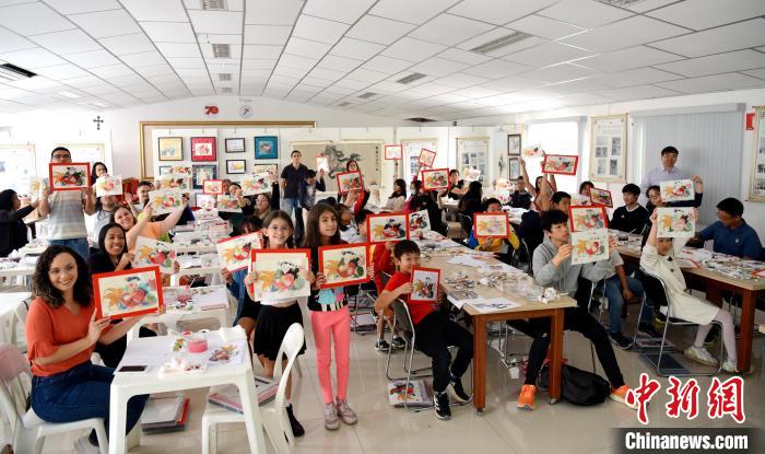 當(dāng)?shù)貢r(shí)間9月10日,天津楊柳青木版年畫博物館、巴西圣保羅華僑天主堂中文學(xué)校聯(lián)合舉辦年畫傳承研習(xí)活動(dòng)。圖為巴西圣保羅研習(xí)活動(dòng)現(xiàn)場。中新社記者 林春茵 攝