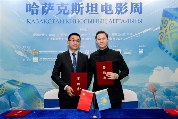 (左:壹家人文化集團(tuán)總裁林進(jìn)右:哈薩克斯坦國(guó)家電影集團(tuán)總裁阿扎瑪特·薩特巴勒德)