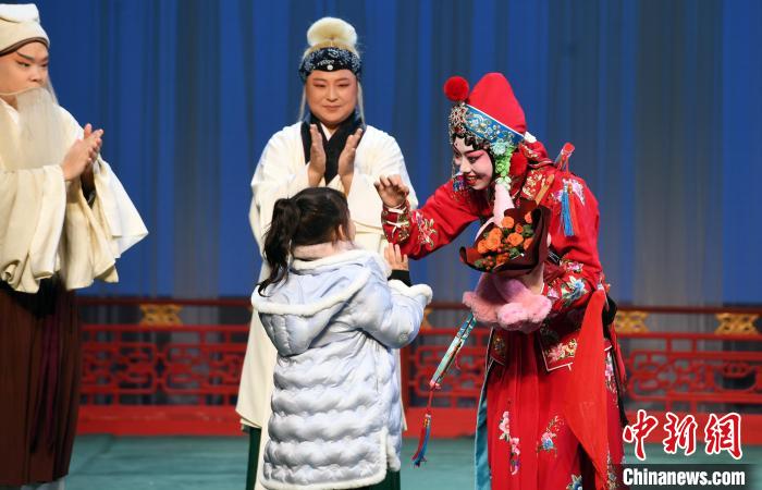 演出結(jié)束后,該劇主演劉泳渤謝幕間隙與一名走上舞臺的女童互動(dòng)。 中新網(wǎng)記者劉可耕攝