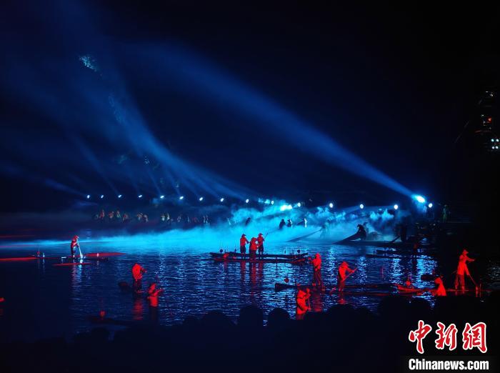 《印象·劉三姐》歡慶公演20周年現(xiàn)場。 周利朔 攝 據(jù)了解,《印象·劉三姐》由張藝謀、王潮歌、樊躍導(dǎo)演,梅帥元總策劃,題材取自廣西歌仙“劉三姐”的傳說,將漓江沿岸的自然風(fēng)景、漁民的生活勞作、少數(shù)民族的民俗風(fēng)情等,通過視覺效果和藝術(shù)編排進(jìn)行融合呈現(xiàn),于2004年3月20日正式公演。 據(jù)《印象·劉三姐》品牌運(yùn)營總監(jiān)謝辰飛介紹,公演至今,《印象·劉三姐》累計(jì)演出超8000場次,接待外賓300萬人次,接待觀眾2000萬人次。 作為中國第一部大型山水實(shí)景演出,《印象·劉三姐》自首次公演以來,一直保持著“全國文化演出行業(yè)觀眾接待量最多、影響力最大、年?duì)I業(yè)額最高”的實(shí)景演藝市場地位,成為廣西乃至中國的旅游名片之一,也成為保護(hù)好漓江生態(tài)環(huán)境實(shí)現(xiàn)可持續(xù)發(fā)展的成功范例之一。項(xiàng)目曾榮獲中國首批“國家文化產(chǎn)業(yè)示范基地”“十大最具影響力國家文化產(chǎn)業(yè)示范基地”等多項(xiàng)榮譽(yù)。2024年,《印象·劉三姐》入選首批“桂林經(jīng)典”名錄。