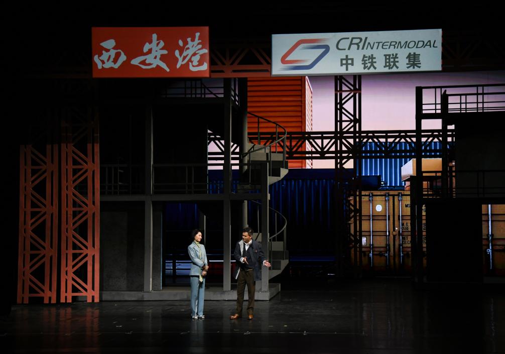 當(dāng)日,由西安話劇院原創(chuàng)排演的話劇《長(zhǎng)安號(hào)的笛聲》在西安首演。該劇講述了西安全力推動(dòng)中歐班列集結(jié)中心建設(shè),將一座四等小站建設(shè)成為“國(guó)際陸港”的奮進(jìn)故事。