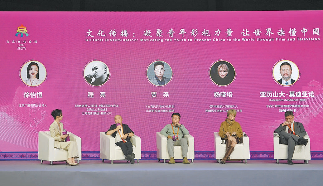 2024北京文化論壇以“文化傳播:凝聚青年影視力量 讓世界讀懂中國”為主題的文化沙龍舉辦。圖為以《影視青春化表達(dá)助力城市文化品牌建設(shè)》為主題的圓桌論壇。記者 程功攝