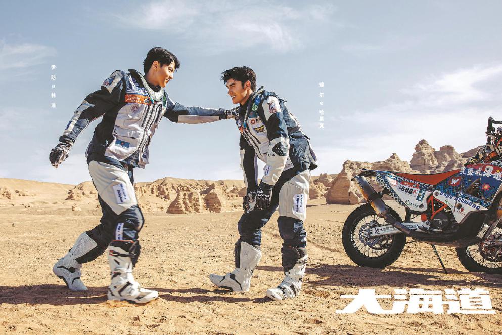 依據(jù)唐代典籍《西州圖經(jīng)》之記載:“大海道……常流沙,人行迷誤,有泉井,咸苦,無草”,古人在廣闊的大海道經(jīng)歷了艱難環(huán)境的試煉,憑借蓬勃的生命力量開辟中國陸上絲綢之路;劇中,哈里克、林浩駕駛摩托車馳騁于荒漠,進(jìn)行極限體驗(yàn)與挑戰(zhàn),延續(xù)了絲路上的生命力量,在兩千年后繼續(xù)書寫生命故事。
